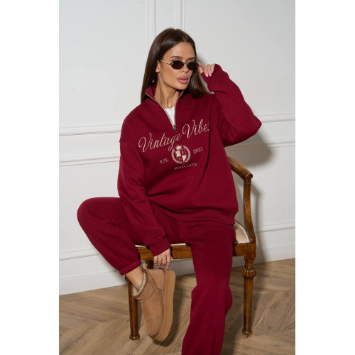 Кофта на блискавці з коротким комірцем додає лаконічного силуету, а штани на резинці забезпечують зручну посадку і свободу рухів.