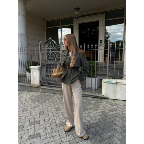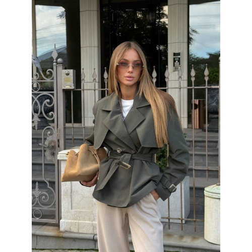 Укорочений тренч із полікотону — мінімалістична модель з сучасним кроєм.