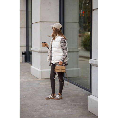 Пухова жилетка в стилі Dior — акцент, який говорить сам за себе.
