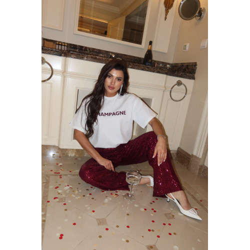 Стильні вечірні штани з паєтками стануть акцентом вашого святкового образу.