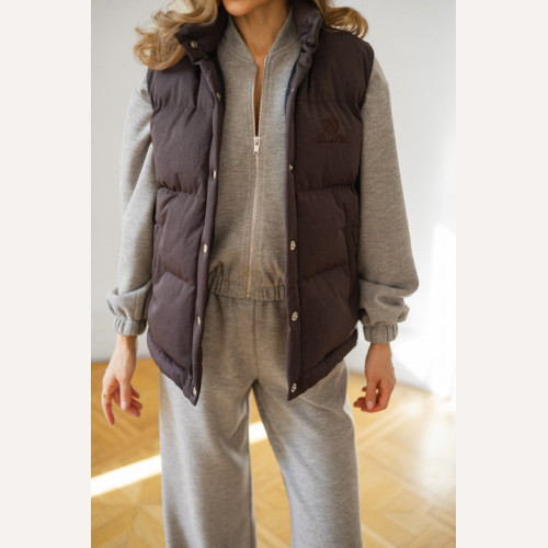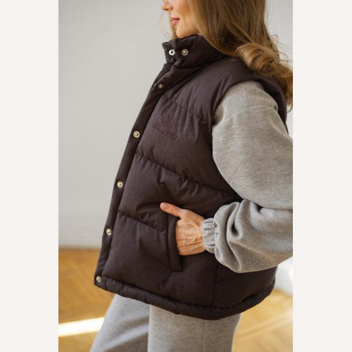 Пуховий жилет з вишивкою — сучасна база для стильних образів у прохолодний сезон.