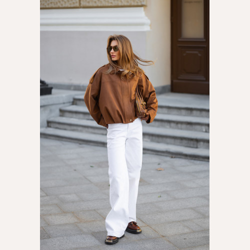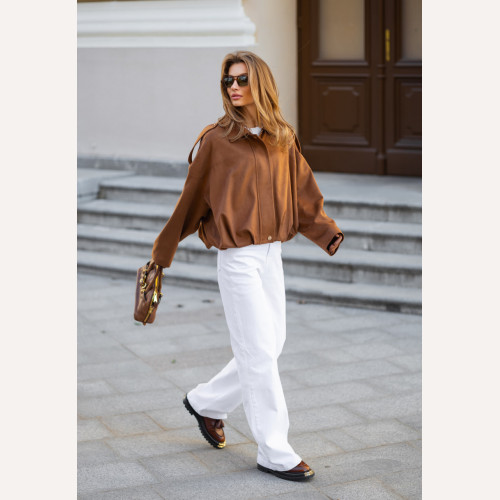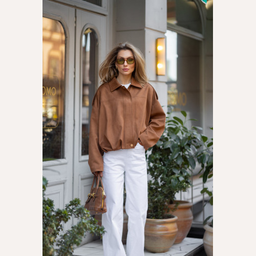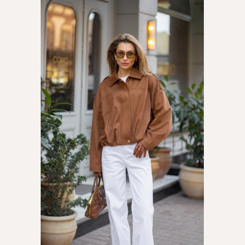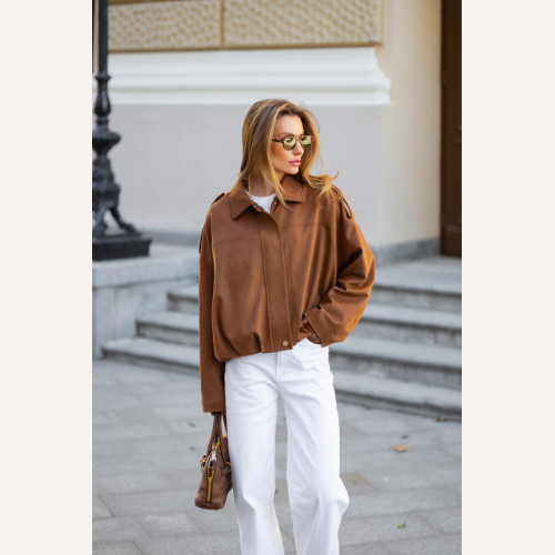 Бомбер із замші зі складками — стильна інтерпретація базового верхнього одягу.
